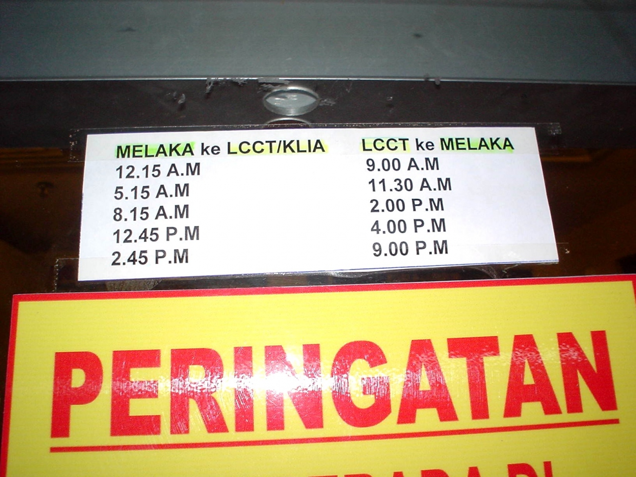 マラッカのセントラル・バスステーションからKL LCCT(クアラルンプール、LCC専用空港)への直行バス。