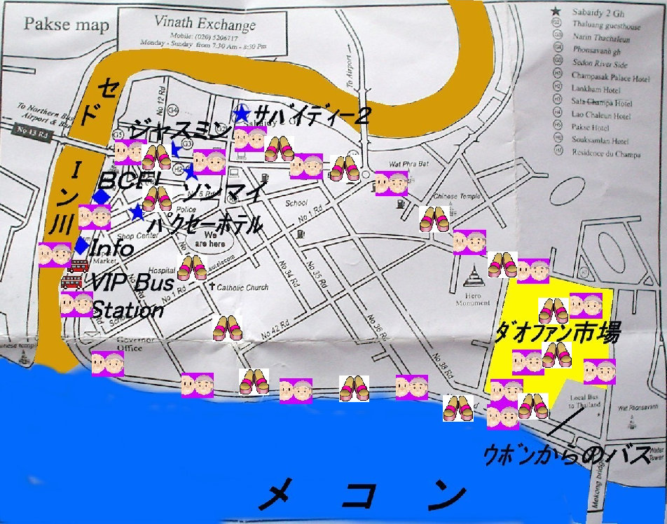 - ソーリヤ・バスステーションからちょっとメコンよりに行ったところ。徒歩約5分。