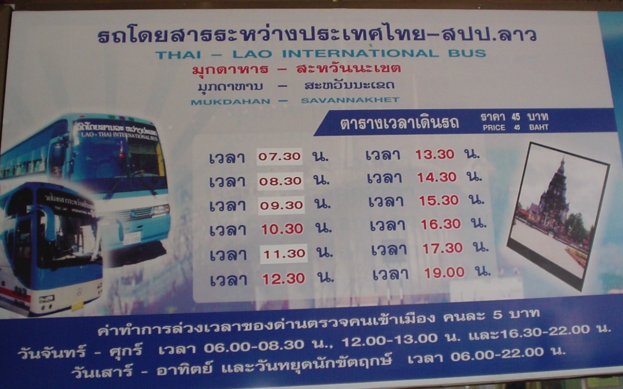 ムクダハン⇒サワンナケート国際バスの時刻表と値段@ムクダハン