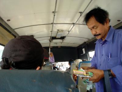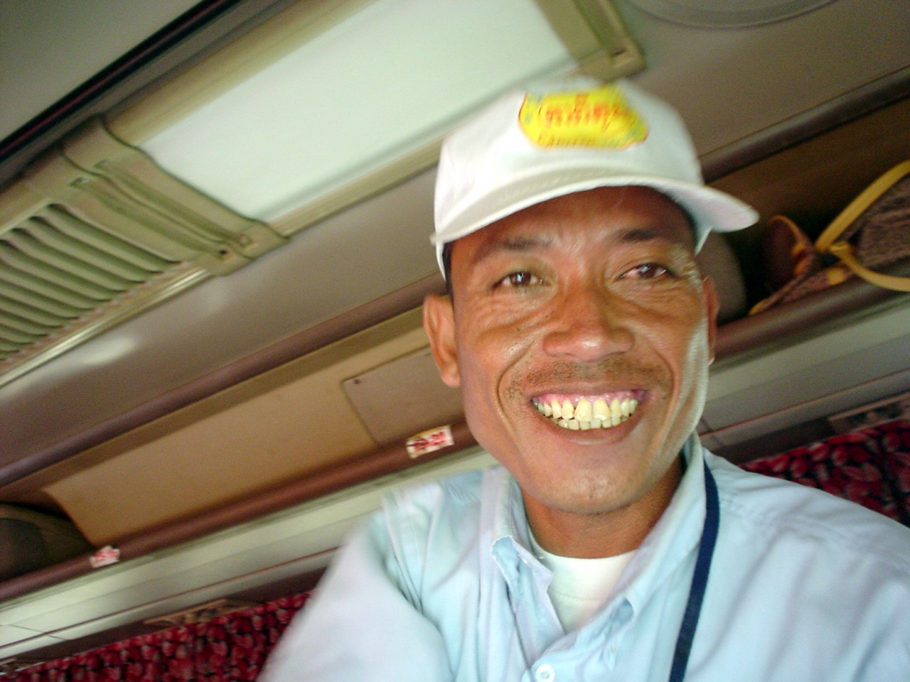 シェムリアップのバスターミナルは街の東の端っこで不便。だが、アヤシイ人がバスに乗ってくる。