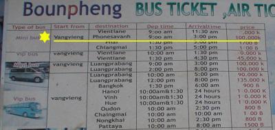 どなたか、バンビエンのバスターミナルの時刻表でも撮っておられる人、居ませんか?