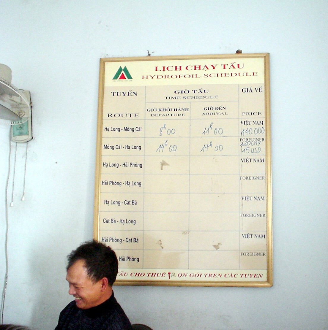 ハロン湾; ハロン市のバス・ターミナルの運賃表2