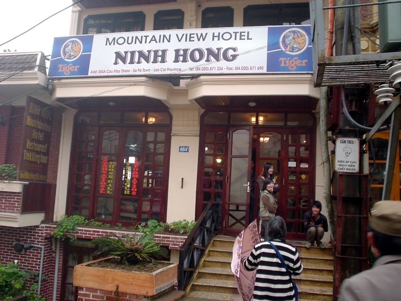 ここはハノイからやって来るツーリスト・バスの運転手たちが常宿にしており、ミニバスがいつも数台停まっている。