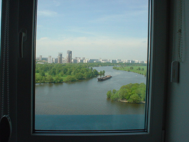 写真はそのマンションの窓から見えるモスクワ川。- 旅行時期