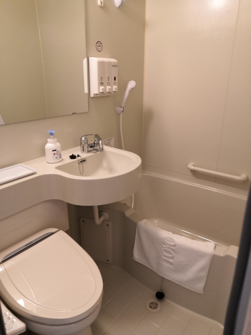 駅の近くの割には 眺めもまあまあ良かった バスタブは真ん中が 円形に出ているタイプで 広く感じるのでこのタイプは好きだ 掃除に関しては 東横インは ほぼ はずれがない