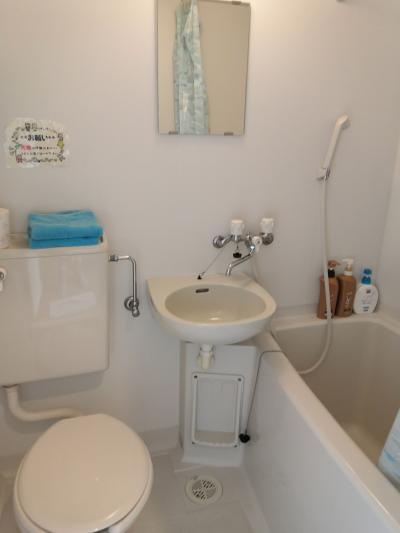 部屋は思ったより広かったです。 エアコンは壁式ではなくてヒーターのような形をしていました。 最初それが冷房もかかると分からなくて エアコンはどこだろうと探しました。 お風呂のバスタブは 四角い形で 座ってギリギリ足が伸ばせるぐらいで体の大きい人は足は伸ばせないと思います。