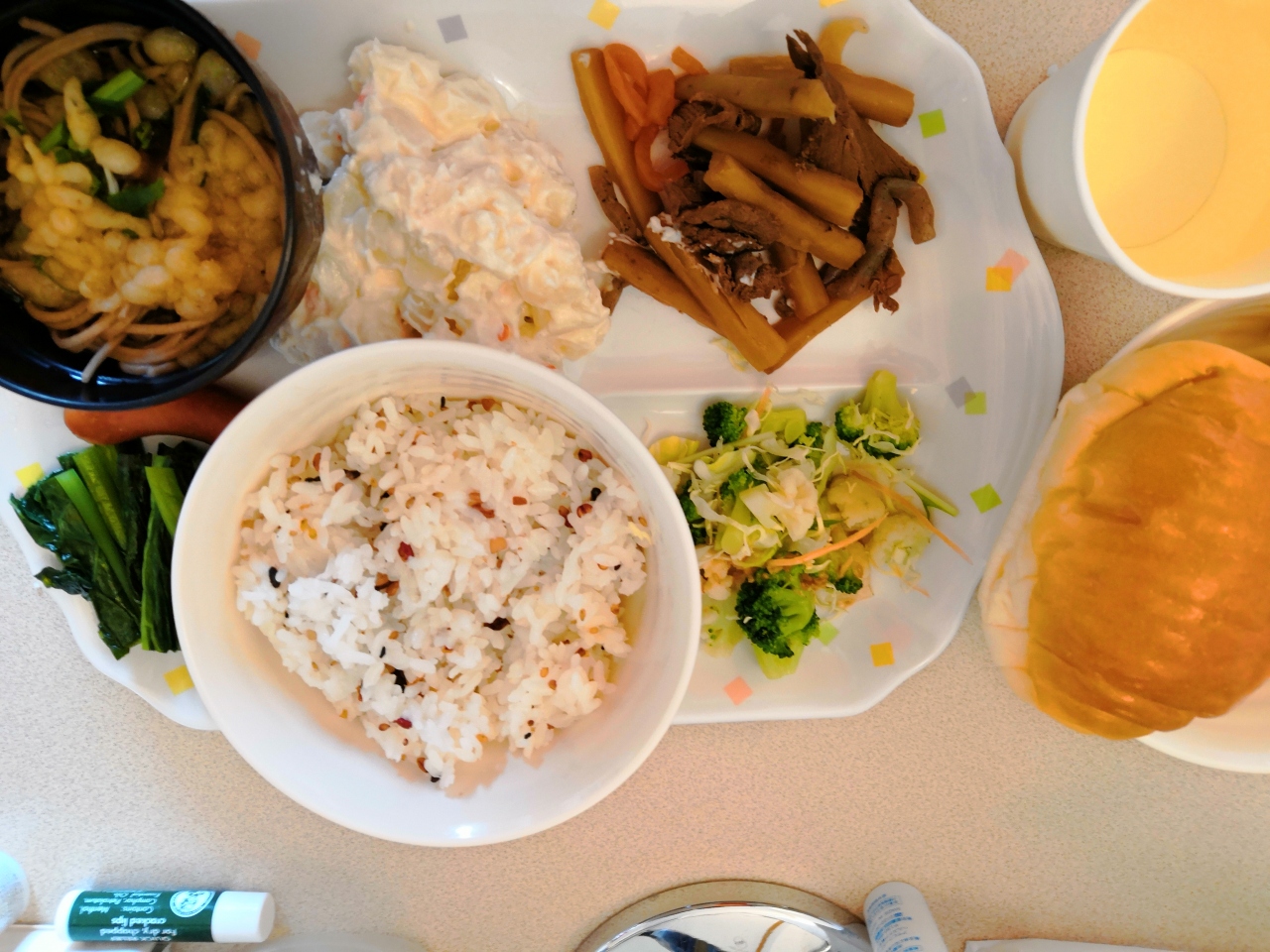近くにスーパーが無く 駅反対側に近鉄デパートがあり そこの地下で食料品を買いました。