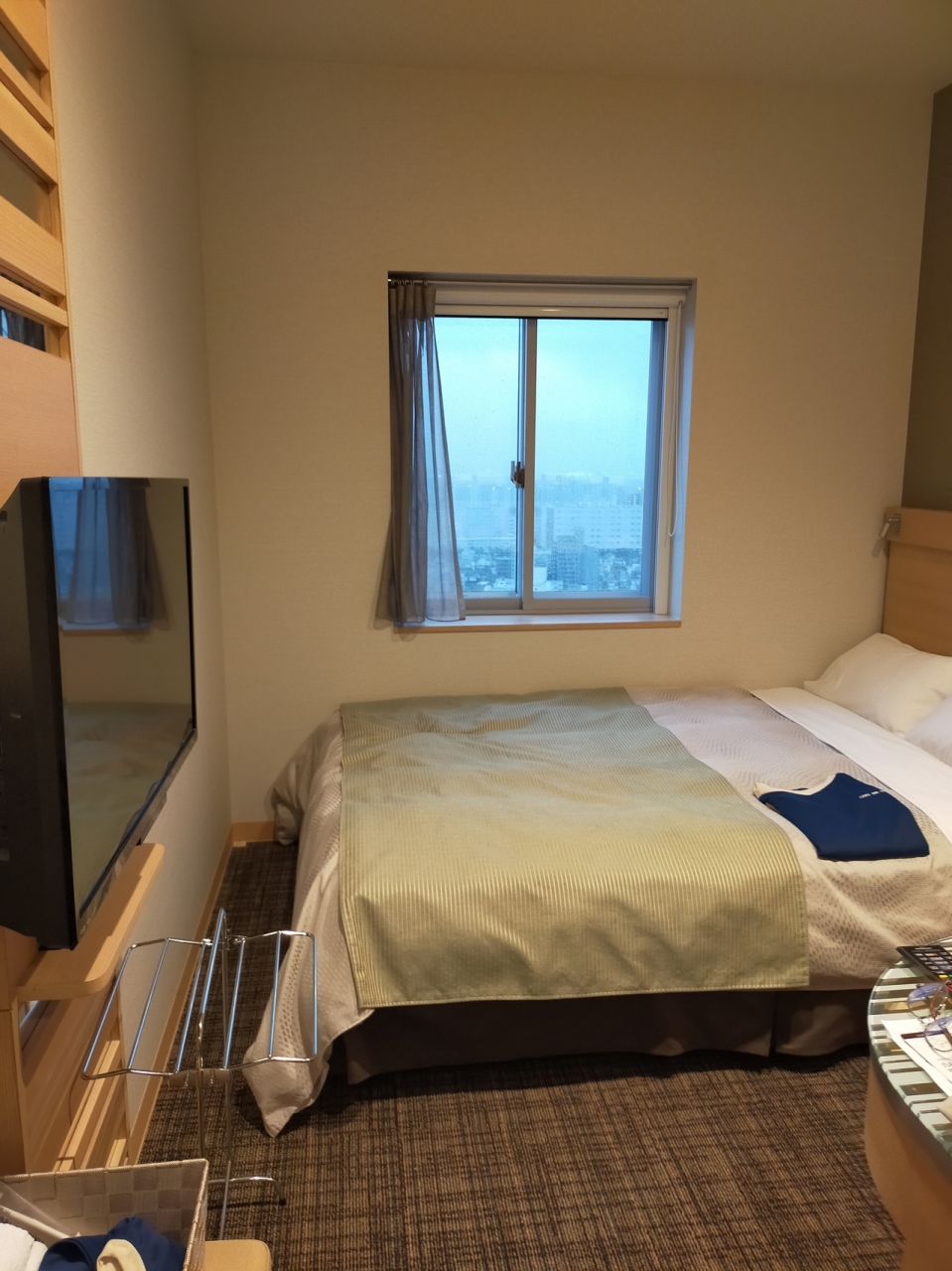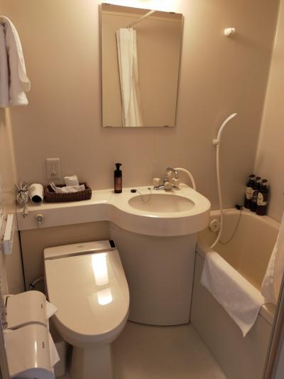 ツインでしたが 狭かったです。 机の椅子に座ると すぐ後ろにベッドがあるのですが 間がなくて通り抜けできないぐらいでした。 バスタブはまあまあの 普通のサイズでしたが 大浴場があるので使いませんでした。 空の冷蔵庫や 湯沸かしポット など 普通に設備は整っています。 アメニティグッズも 揃っていました。 駅前と書かれていたので駅のすぐ近くだと思ったら 線路をくぐって 駅前に行くので 徒歩11分かかります。 全国割のクーポンを使うために駅まで行きましたが 路面電車が走っていて 良い感じの雰囲気でした。 ツアーだったので 夕食 朝食ともに ホテルで食べましたが 特別豪華ではなくても ビジネスホテルとしてはまあまあだと思います。 ベッドサイドに 二口コンセント ツイン だと それぞれで合計4箇所 USB 接続などがあり コンセントは 困らなかったです。