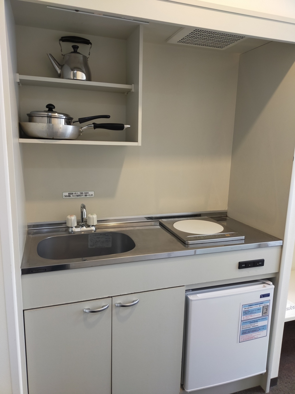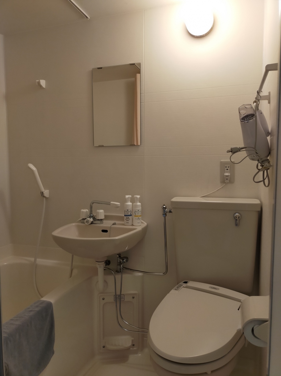 駅から少し遠いですが 部屋は 値段の割には 広めでした。 テレビの大きさは普通で デスクが広いので使いやすかったです。 空の冷蔵庫 電気ポット アメニティグッズも揃っています。 2階がフロントで 1階にローソンがあります。 入り口がバス通りから少し入ったところにあるため また1階が ローソン だったので 分かりづらかったです。 2階 に 看板などがあるので 上を見ればすぐにわかるのですが1階 ばかり見ていました。 バスタブが狭めです。 ここも 泡石鹸や シャンプー枕など 借りれるものがあります。 ベッドはセミダブル ぐらいです。 駅から 少し離れている分 部屋は まあまあの広さなので ゆっくり過ごせます。
