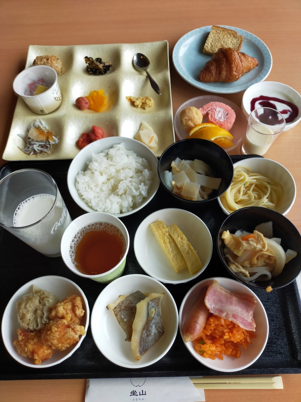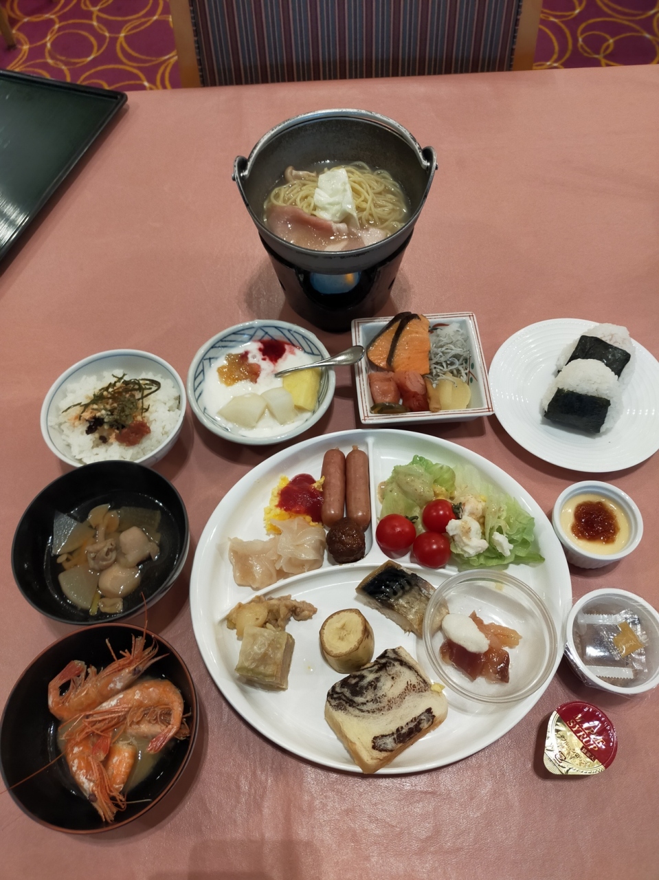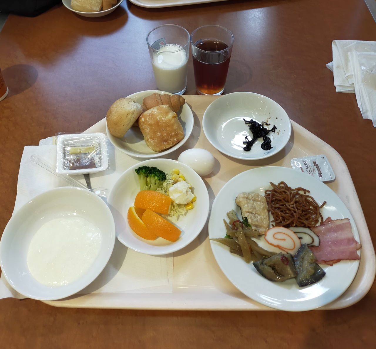 リージェントホテル 今回 4階でした。 5月から 3回目の利用です。 前はビル なので 景色はそれほど良くないけど 道路や ドンキホーテが見えるので それなりに楽しめます。 無料朝食 は おかずが2、3種類と おにぎりが 2種類か3種類 いなりずし と海苔巻き フレーク 味噌汁 わかめスープ ポタージュスープ 飲み物などです。 最初は 悪くないと思ったけど 何回も利用したり連泊していると メニューが変わらないので 飽きてきます。 メニューが少し変わると 良いのですが 無料朝食 なので 仕方がないかとも思います。 ベッドはセミダブルサイズ ぐらいです。