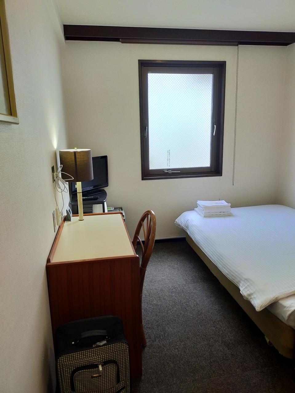 宇都宮駅からも近く 隣に スーパーヤオコー が入ったビルがあります。 駅近 なので 飲食店や お店も多く 1階にセブンイレブンもあります。 とても便利です。 部屋は セミダブルベッドで こげ茶のデスクに オフホワイトの壁 モノトーンの色彩でまとめられています。 デスクの隣 の棚は 小さめのスーツケース なら置けます。 それ以外にも折りたたみのスーツケース置き場があります。 ビジネスホテルの 用品や アメニティは揃っています。 エアコンはスイッチ方式ですけど 結構 冷えます。 建物は古いと思い 細かいところは 完璧でもないけど 過ごしやすいです