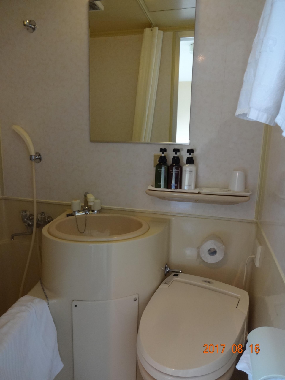大浴場があるので そちらを使うが 展望風呂なのに 曇りガラス部分が 高すぎて 海が見えないのは 残念。