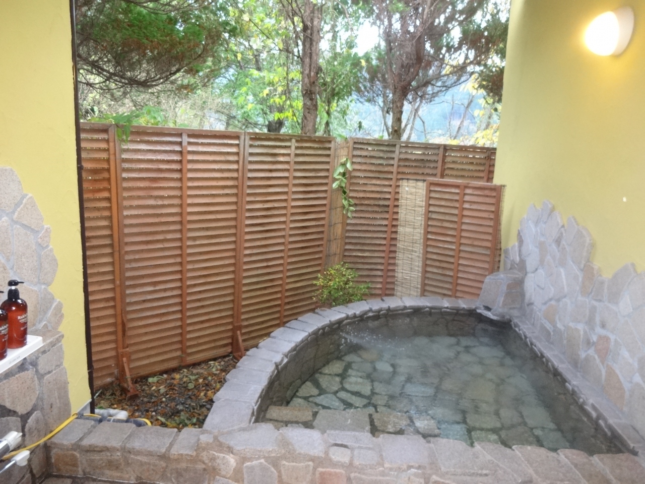 2つの源泉の温泉で 別館の露天風呂がぬるめの丁度良い熱さで 広いのでゆっくる入れます。