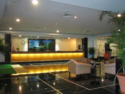 ホテルの玄関から入ってすぐのロビーは広く くつろげます。