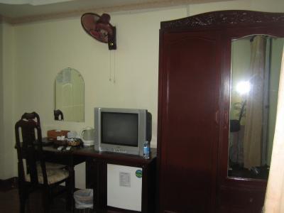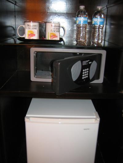 テレビに金庫、ポットにお茶セット。