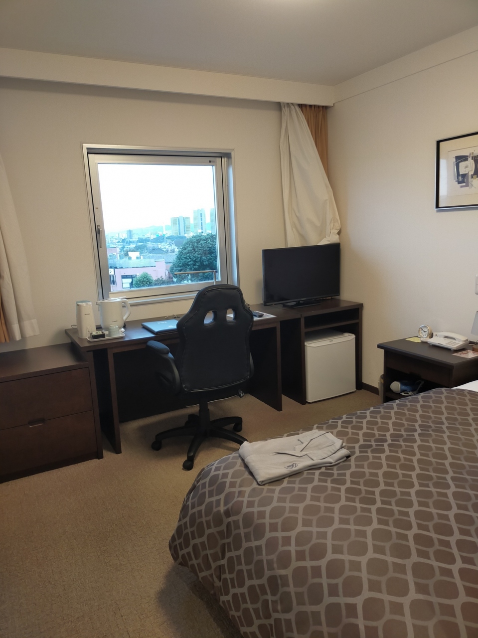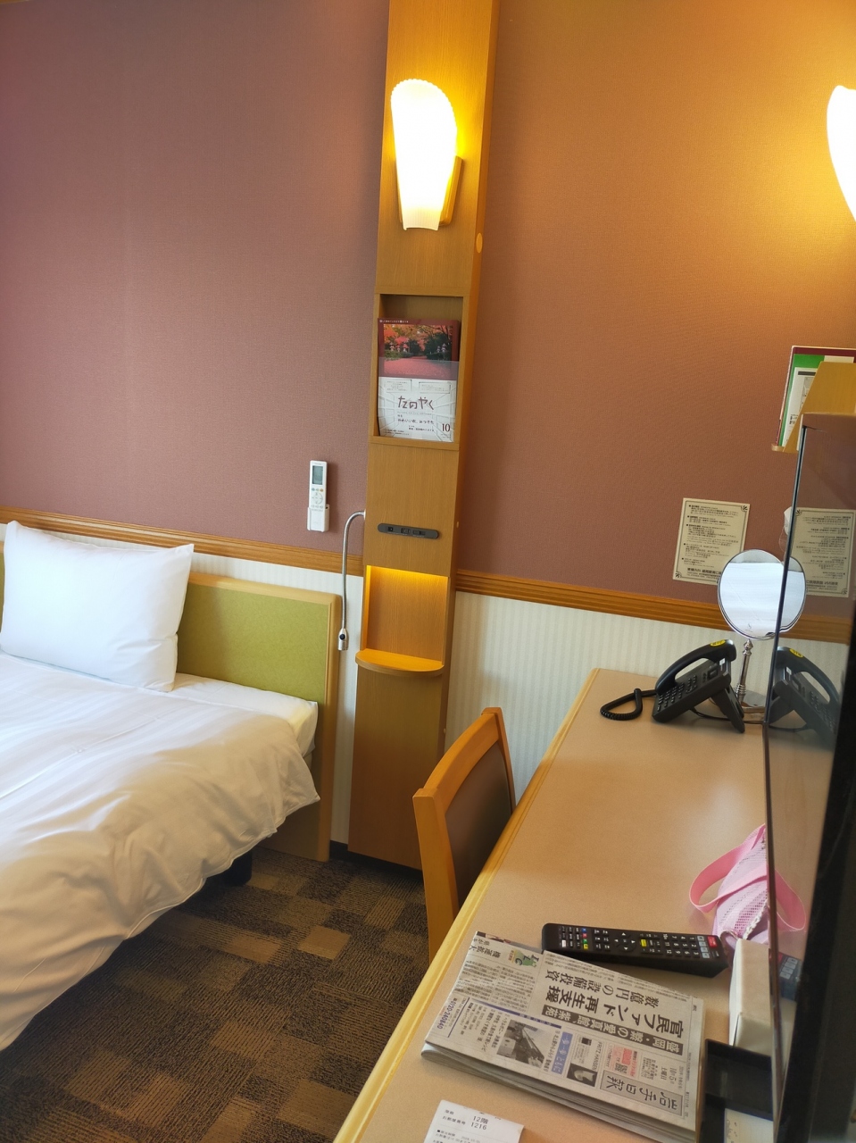 ルートインは駅から近くて便利です。 盛岡駅には横断歩道が少なく 地下に降りて行くような形です。 エレベーターがついているところもありますが 階段を利用することも多く 慣れるまでに少し時間がかかりました。しかし、駅に行く時、ホテル前に横断歩道があるので助かりました。 ルートインは14階建てで 最上階の14階にお風呂があります。 部屋はその下の13階だったので すごく 景色が良かったです。 駅前ですが ロータリーで遮るものがなく 岩手山も綺麗に見えました。 部屋が 狭いですが テレビのディスプレイ はまあまあの大きさで見やすかったです。 アメニティは 一応一通り揃っています。 ミネラルウォーター や ウェルカムドリンクはありませんでした。 枕が 好みの硬さで ベッドも 広めで寝やすかったです。