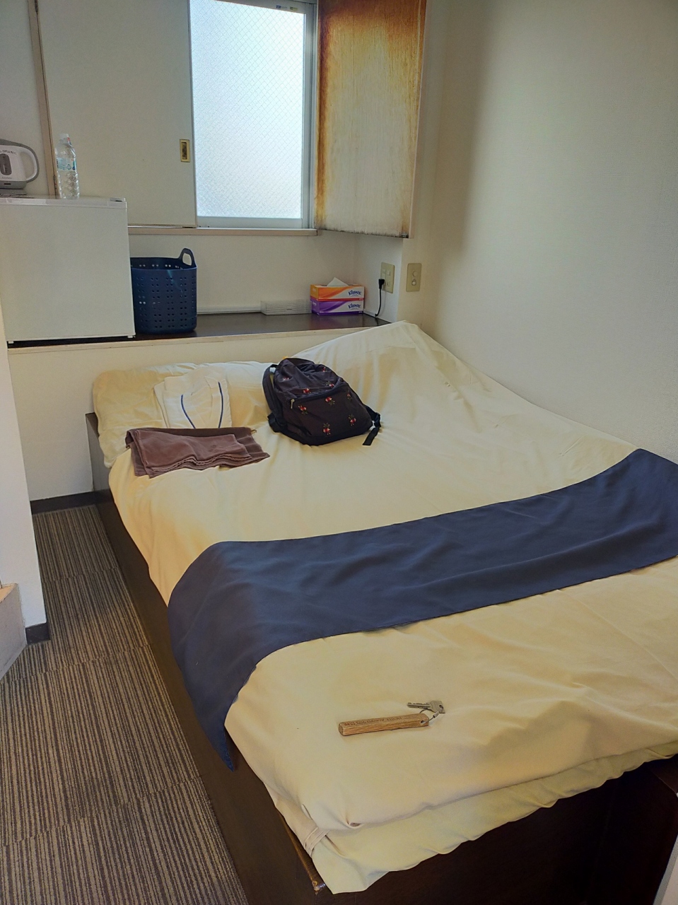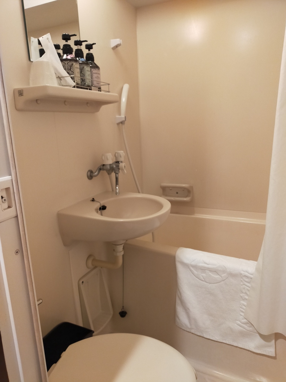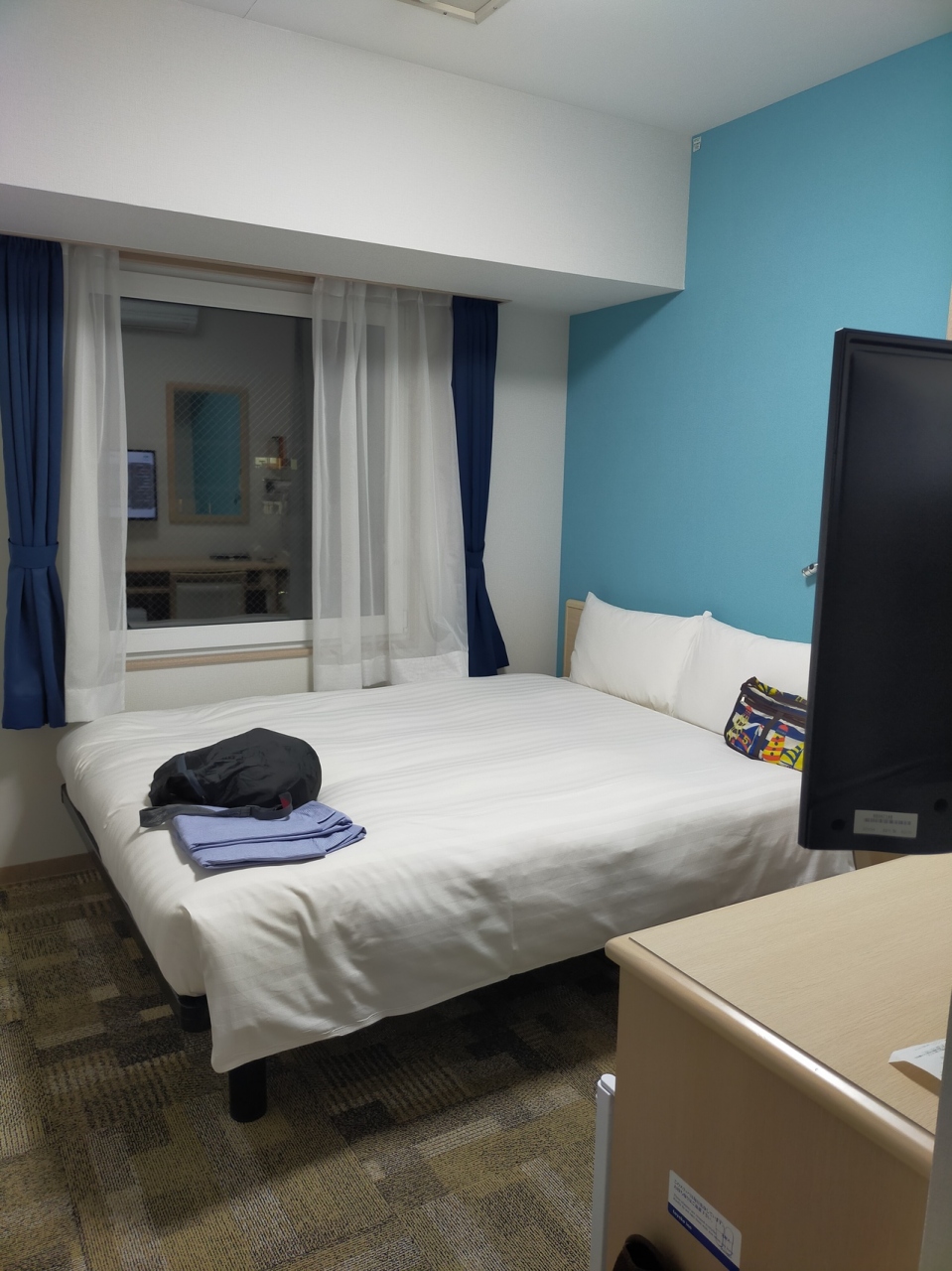 狭いです。 部屋の広さは5平米です 。池袋も狭いと思ったけどもっと狭いです。 部屋にはベッドのみ テレビもありますが 電気ポット や デスク はありません。 アメニティも 歯ブラシのみです。 バスタブも 狭く 足が伸ばせないぐらいですが お湯はすぐに溜まります。 電気ポットがないところは初めてで どうしようかと思い バスルームのお湯を飲みました。 駅からは近いです。 スーパーや 飲食店が周りにたくさんあるので 便利です。 wi-fi はよく繋がりました。 唯一 良い点は チェックアウトが12時です。 寝るだけと思って予約しましたが やはり デスクは欲しいと思いました。
