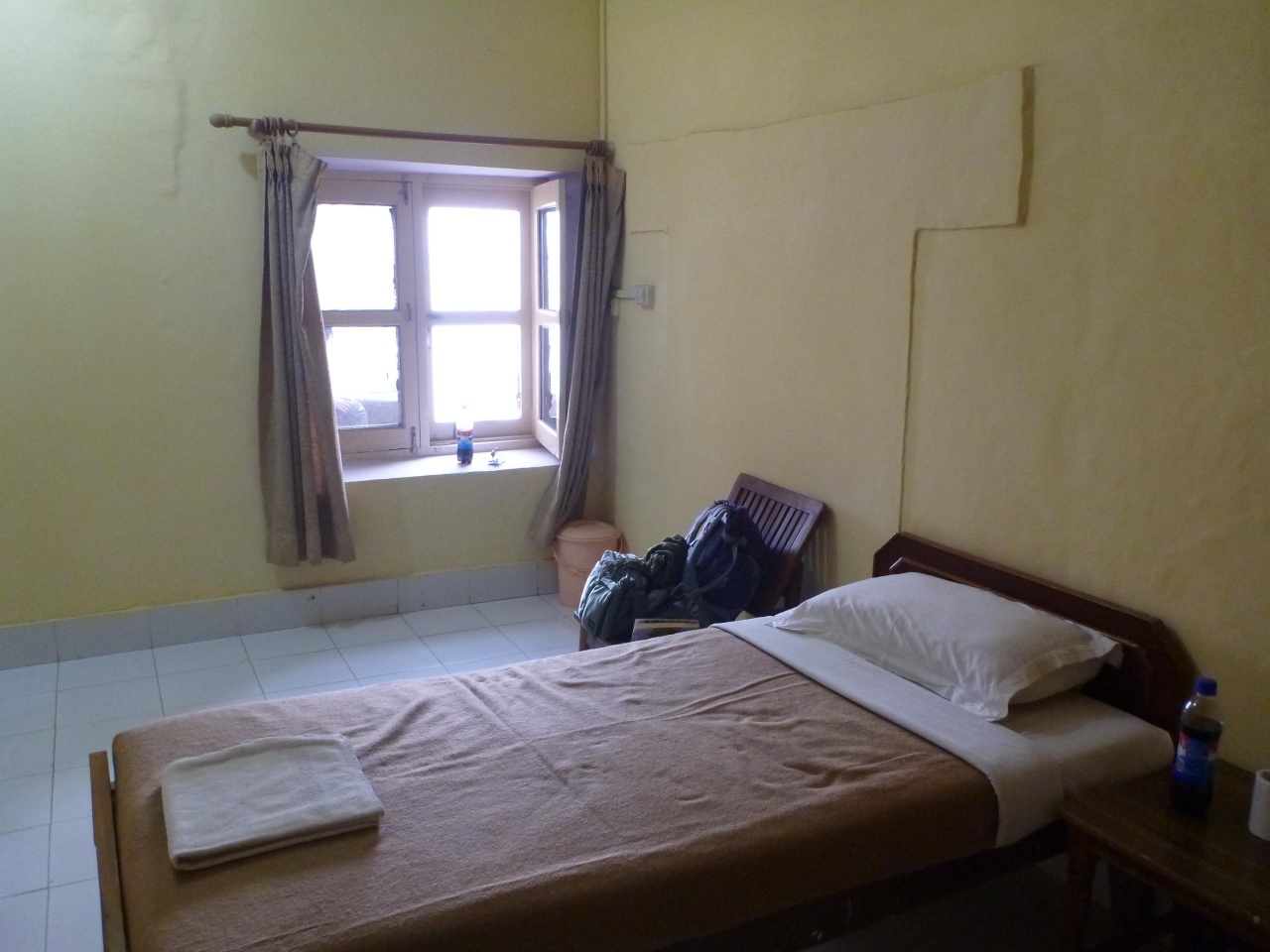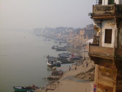 HOTEL Palace On Stepsの建物は非常に古く、かつて実際にマハラジャが住んでいた場所だそうです。私たちの泊まった部屋ガンジス河に面した場所にあり、外の回廊からガンジス河を見渡すことができます。シャワー&トイレルームはとても狭く、エアコン無し、ファン有りでした。