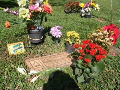 セナのお墓のプレートです。絵をお供えしました。このためだけに日本からや...