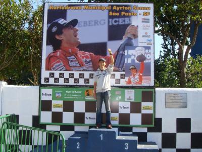 インテルラゴスサーキットカート場の表彰台です。普段は右利きなんですが,...