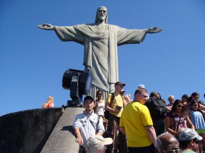 コルコバードの丘のキリスト像です。大きなキリスト像に見守られていると,...