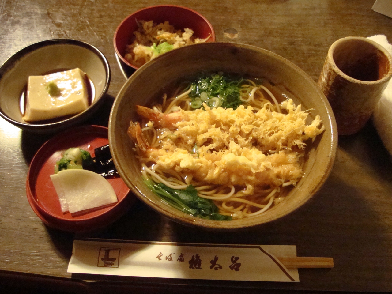 天ぷらそば、かやくごはん。ごま豆腐、お漬物がついて¥1800だったかな。