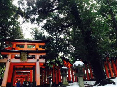 2015年の初詣に伏見稲荷行ってきました。伏見稲荷は3回目ですが、初詣は初めて。1月4日10時にJR稲荷駅出発。思ったほど参拝者は多すぎず、ストレスなく山頂へ到着できました。やはり千本鳥居は素晴らしく、雪の色と調和して、疲れも感じず堪能できました。普通の日なら往復1時間半程ですが、今回は初詣の人の多さ、残雪による足元の悪さ、子ども連れ、屋台の誘惑などで、2時間半程ゆっくり参拝でした!