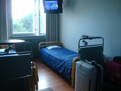 - ダブルベッドで快適。一人なら広さも十分