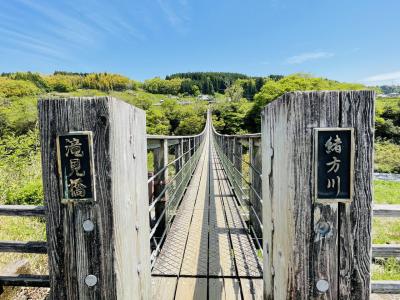 遠くからでも大きな吊り橋が見えるので時々車を停めて撮影しました。
