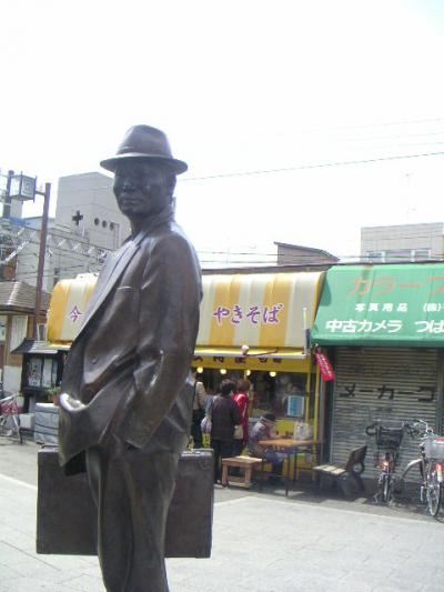 駅前の銅像。たくさんの人が正面から記念撮影で、順番待ちをしていたので、...