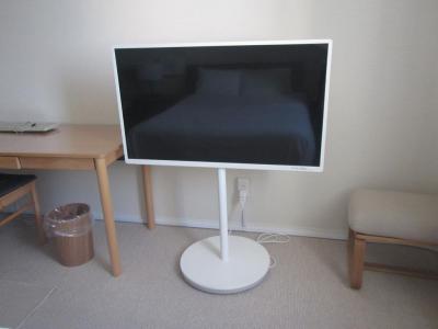 部屋は明るい白で、足元も広々、TVも床から伸びたアーム式と、デザイン性も良いです。