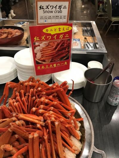 食事は朝夕ともにバイキングで3月末までは夕飯でカニ食べ放題があります。