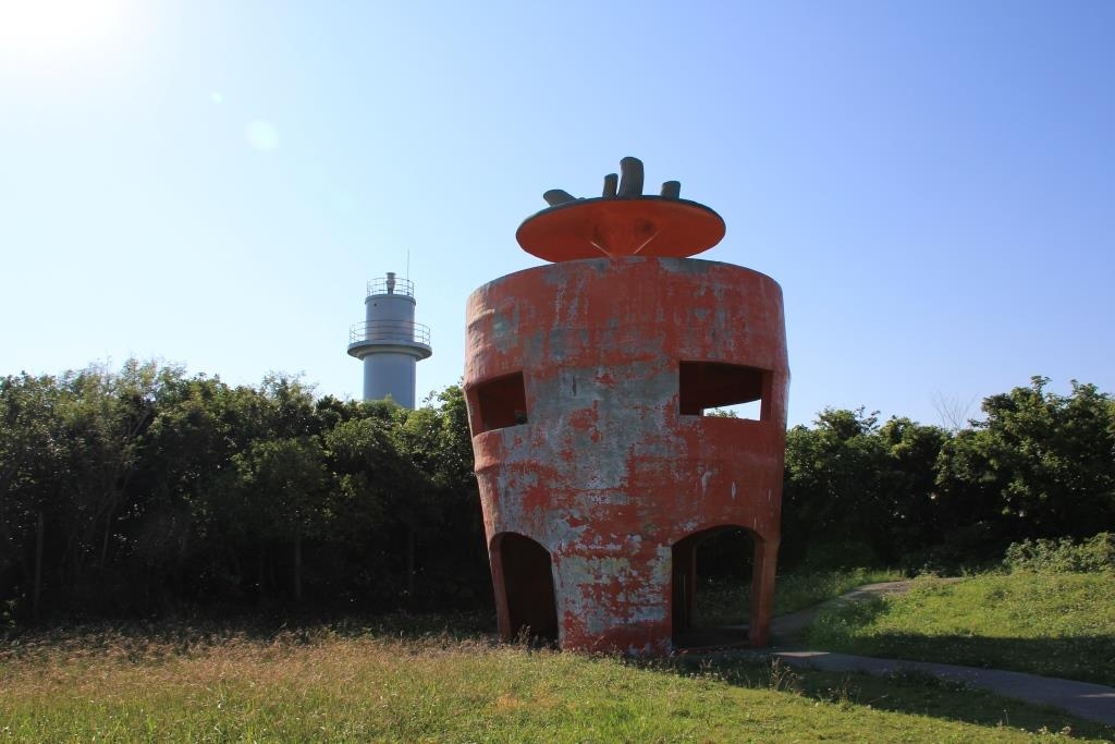 この展望台の奥に津堅島灯台があり、灯台の下まで行ってみようと思ったのですが、道は草に覆われてちょっと入れる感じではありませんでした。