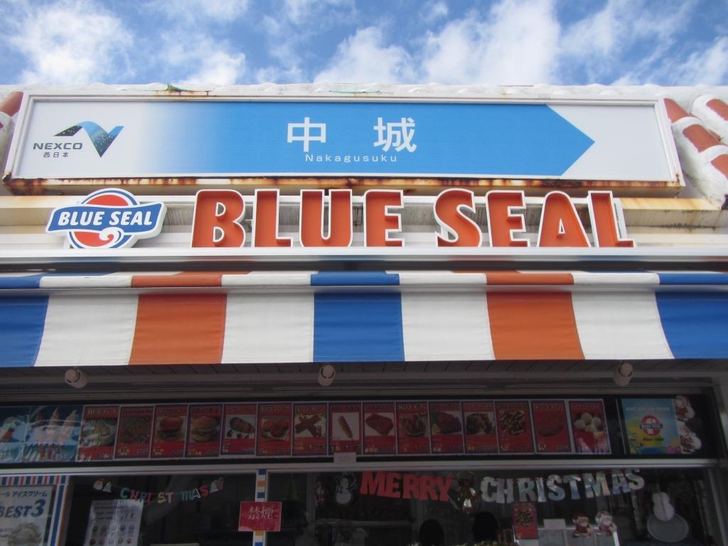 沖縄と言ったらブルーシール、パーキングエリアに入ると早速ブルーシールアイスクリームの看板引かれました。