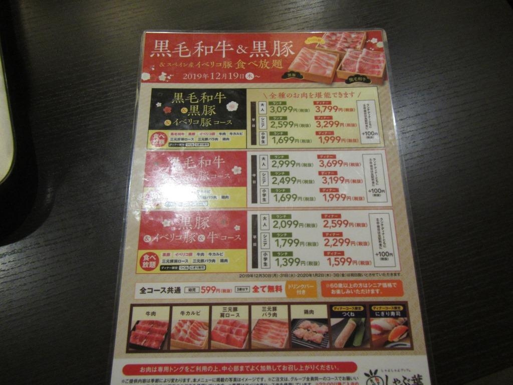 年末年始特別メニューとして、黒毛和牛・黒豚・イベリコ豚の食べ放題コースがありました。