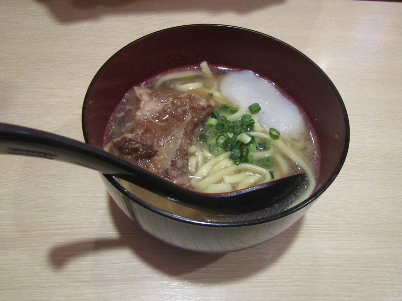 沖縄そばを注文した食堂には、ステージセットがあり、三線が壁から何本かかけられていて、ドラムセットなどもありました。