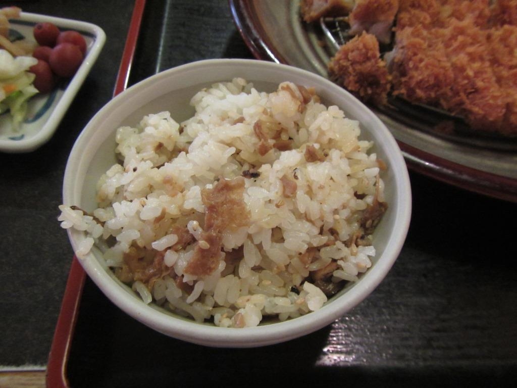 基本的には揚げ物に、選べる2種類のご飯、 選べる2種類のお味噌汁、そしてたっぷりと食べられるお漬物、これで定食になっています。