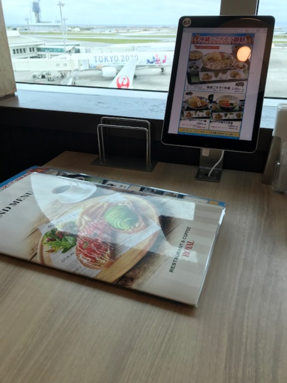 那覇空港ビルの四階、滑走路向いて左手にあります。