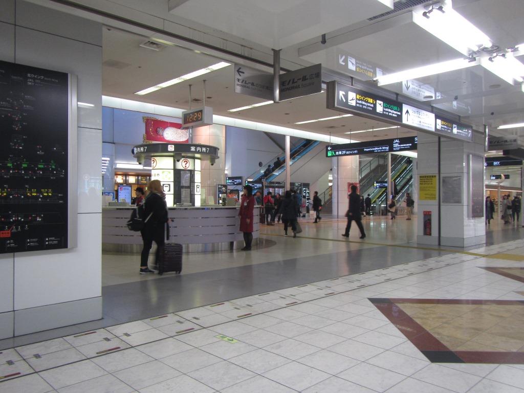 京浜急行で羽田空港近い駅に着いて、エスカレーターを2回昇り、インフォメーションカウンターの後ろの長いエスカレーターで出発ロビーに上がります。