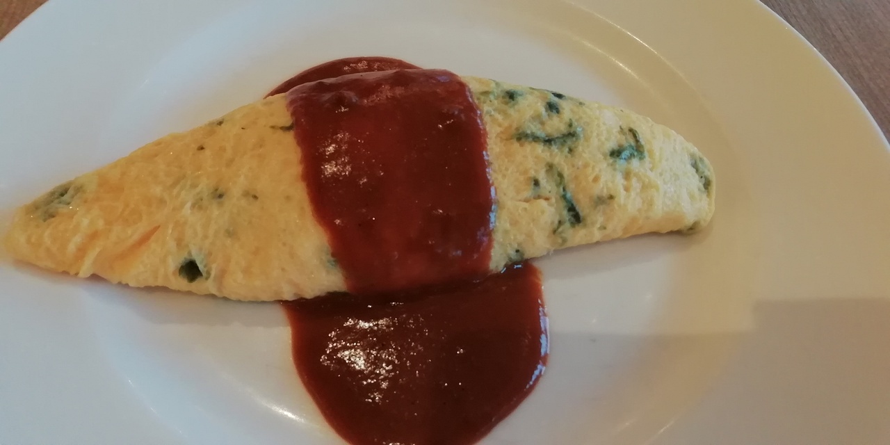 少し大きめのオムレツは、好きな具材を選んで混ぜて焼いてもらいます。