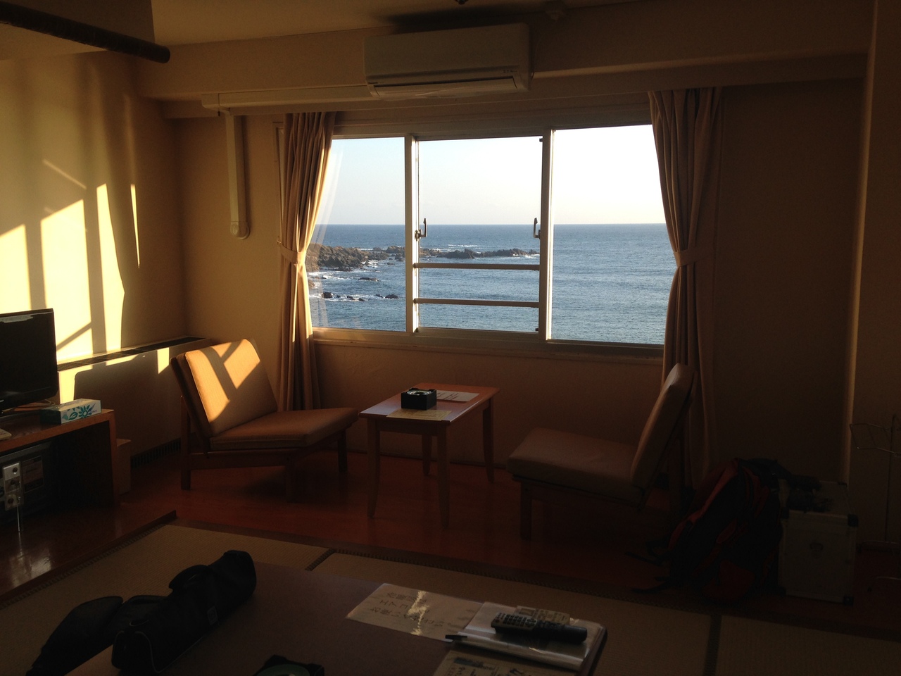 部屋は目の前が海だけあって眺めは最高です。夕陽も眺められます。