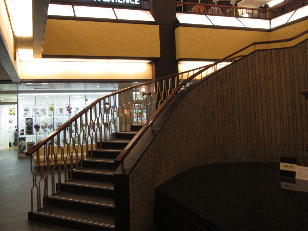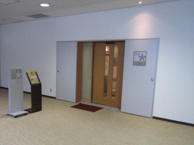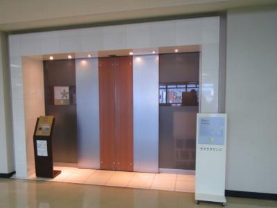 ふつう、JAL国内線サクララウンジというと、搭乗ゲート前にあるイメージですが、成田空港の国内線サウララウンジは、手荷物検査場を通り、矢印に従って搭乗ゲートとは違う方向に分かれ、階段を昇って昇って袋小路にラウンジがあります。