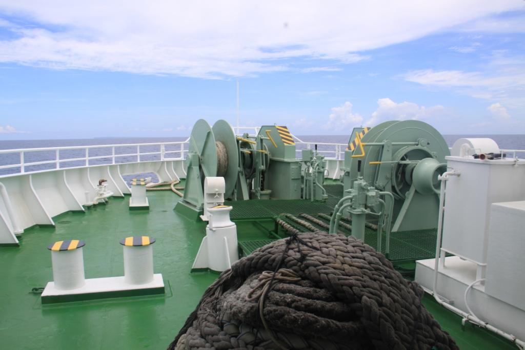 窓からの景色・・・ 大海原を行きますので、わりと何も見えませんが、船左右の水面を見ていると、トビウオが逃げるように飛んで行くのが見られます。けっこう楽しいですよ。- 旅行時期
