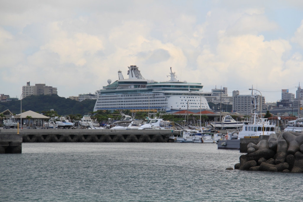 国際航路の船が発着するところなので、中を自由に見学することはできませんけど、波の上ビーチの駐車場に車を置いて、周辺道路を散歩すると、大型客船を観賞&撮影できます。