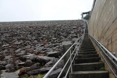 ダムの下部に車を置いてそこからダムの端を歩いて登るはめになりました。