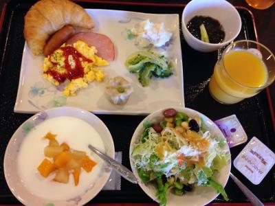 朝食はビュッフェで沖縄野菜を使った料理など和と洋と品数も揃っていました。