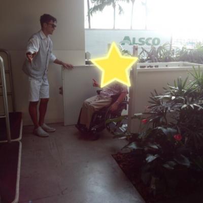 モリモトワイキキにディナーに行きました。入口には階段がありますが、車椅子の主人を見ると昇降機をセットしてくれました。そしてレストランまで案内してくれました。ホテル自体はゆっくり見れませんでしたが、動く本棚があったり、トイレも普通のトイレとは違って名前の通りモダンでした。