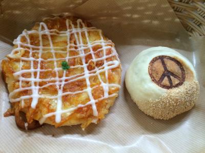朝7時から開店しているパン屋さん。店内では落ち着いた雰囲気のソファとテーブルでビートルズの音楽を聞きながらパンが食べれます。ブルーベリーのパンが有名です。今回はオレンジ畑と二口あんぱん。飲み物もオーダーできます。ただ紙コップなのが残念。