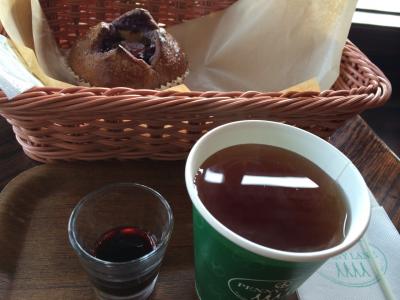 朝7時から開店しているのでパンを買いお店の中のゆったりしたソファでいただきました。この日はパンは大好きなブルーベリーバンズ、紅茶もブルーベリーティーにして。目に良さそう。落ち着いた雰囲気で朝からゆっくりできます。