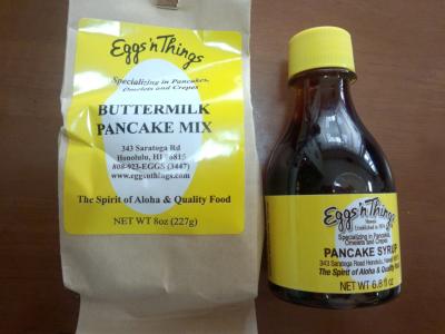 主人と息子はTシャツを、私はお決まりのパンケーキミックス。